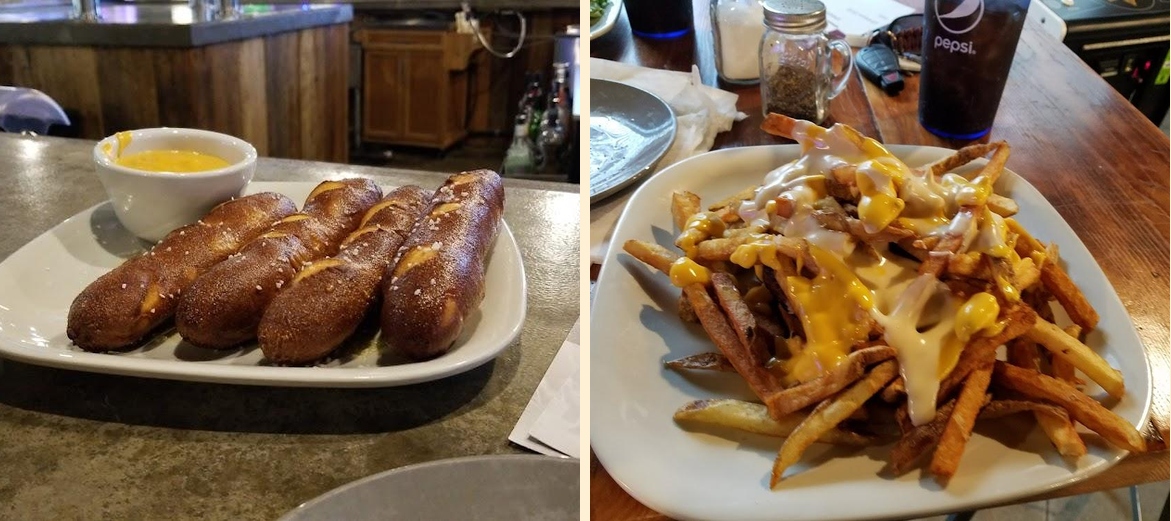 You should try the Bavarian Pretzel Sticks and the delicious burgers like the Jumbotron. The kabobs, both beef and shrimp, are also popular.